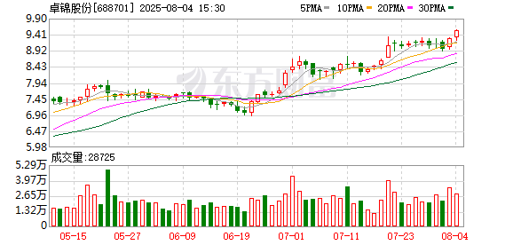 证券时报·数据宝统计显示,卓锦股份今日收盘价为9.53元,上涨2.47%,日换手率为2.14%旺润配资,成交额为2706.82万元,全天主力资金净流入31.60万元,近5日该股累计上涨3.59%,近5日资金合计净流出458.72万元。